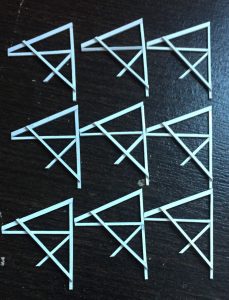 A ideia foi construir o modelo todo em estireno, usando para isso placas de 1mm, 0,50mm e 0,30mm de espessura.