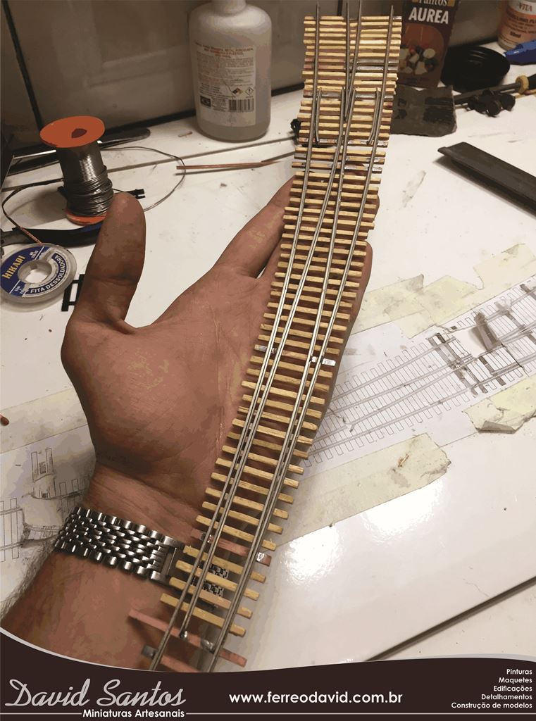 Além de conferirem maior impacto visual à maquete, pois não possuem partes plásticas, os AMV’s construídos por mim na oficina, conferem confiabilidade e segurança para rodar trens, sem agulhas partidas ou problemas de alimentação.